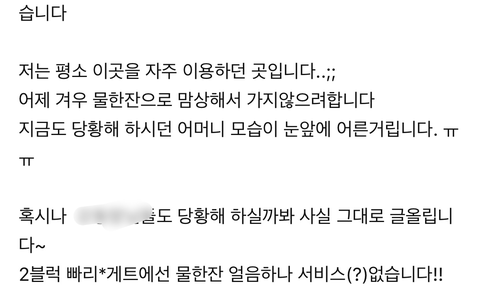 이 글 읽고나서, 이 글을 욕하는 사람들이 대다수 일 줄 알았는데 오히려 업체를 욕하는 사람들이 다수라 적잖이 당황함. 물을 파는곳에선 저렇게 대응할 수 있다고 생각했는데;;
