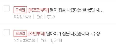 딸이 집을 나갔다고 전에 글을 썼던 사람입니다