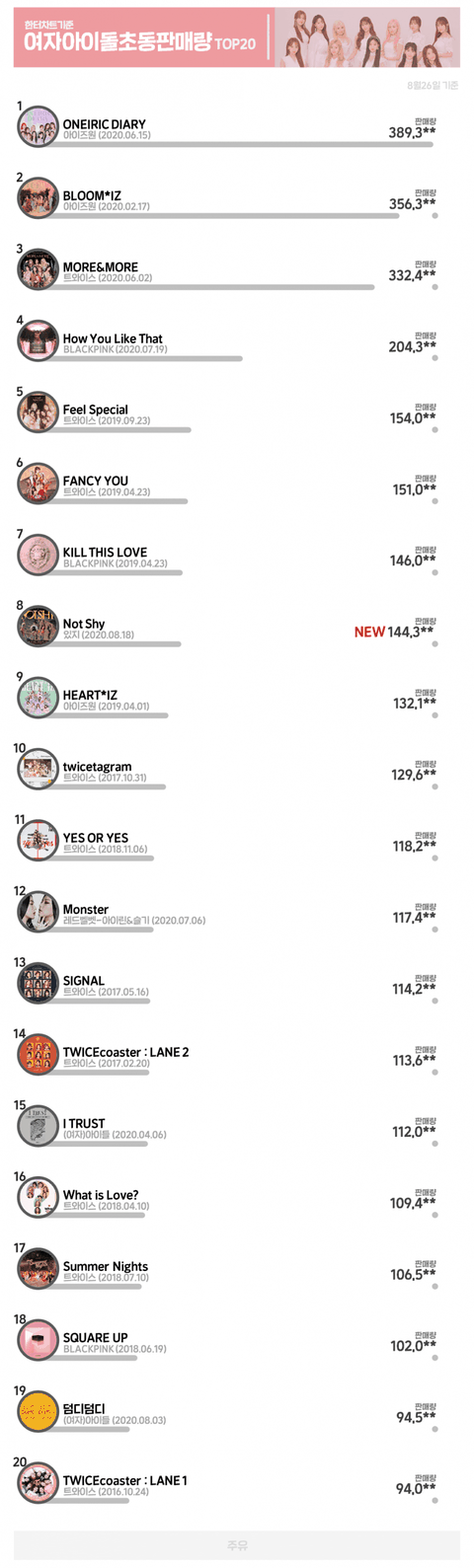 +) 여돌 초동 판매량 TOP 20
