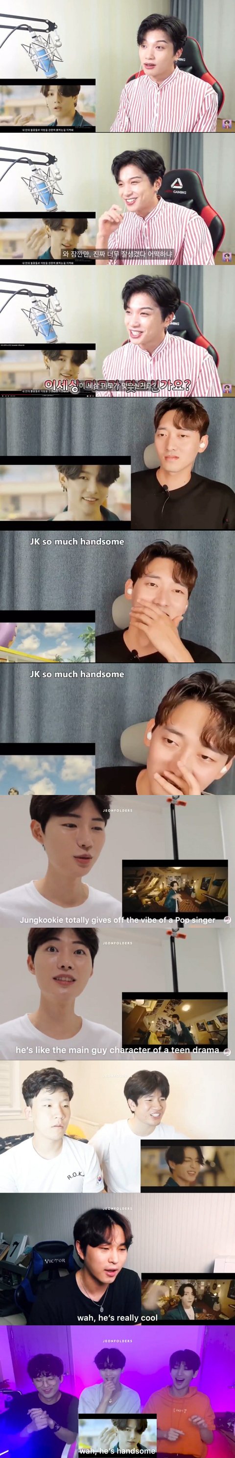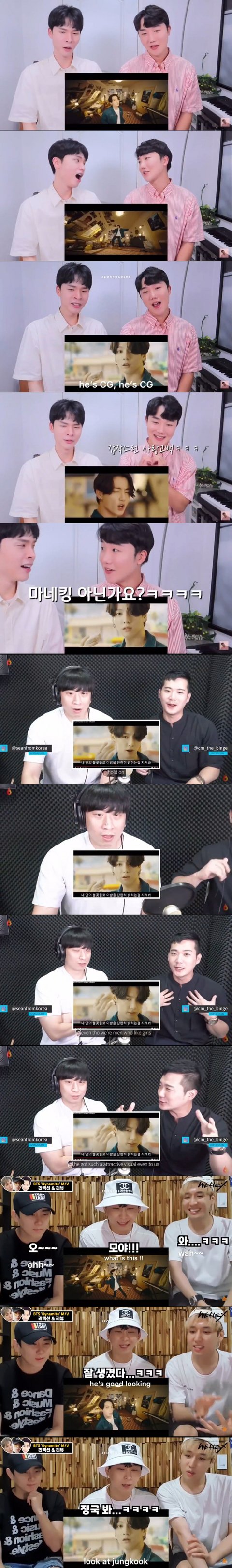 정국이 얼빡샷이 나올때마다 입벌리고 감탄하는 남자 유튜버들