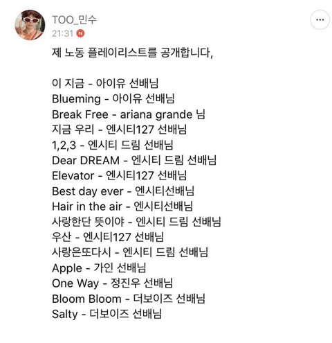 너네 ㅌㅇㅇ 밍수님 엔시티 좋아하는거 아냐