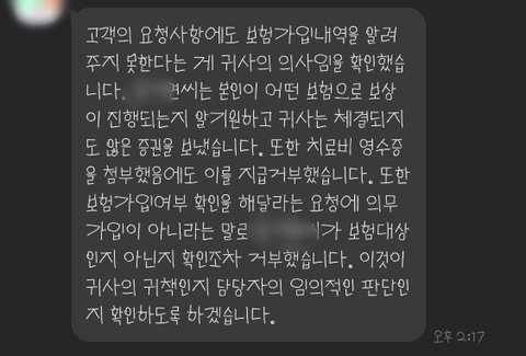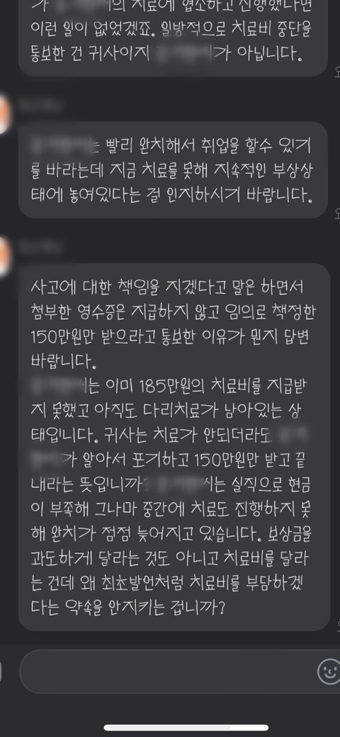 현재까지 185만원 정도의 치료비를 못받고 있는 상황입니다