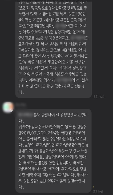 치료가 길어지니 이것저것 핑계(회사에서 동의없이 멋대로 받아온 의료자문등)를 대며