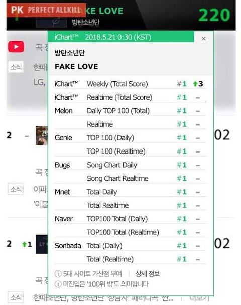 2018년 방탄소년단 FAKE LOVE로 첫 어른차트 pk