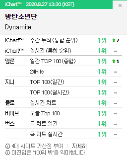 2020년 방탄소년단 세번째 어른차트 pk 달성