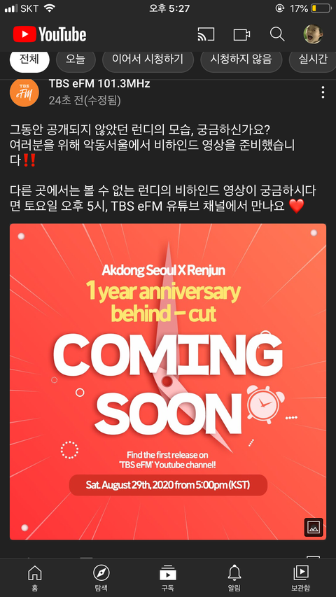 토요일 5시에 나오니까 다들 챙겨봐!!