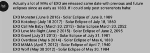 엑소 컴백 날짜가 다 일식한 날이었대..