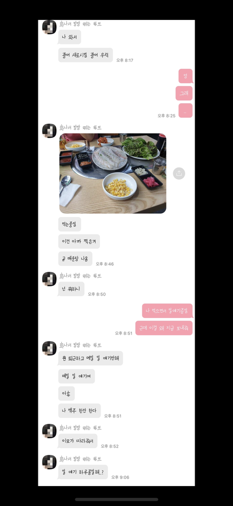 어제 있었던 일인데 남자친구가 일 끝나고 어머님을 만나러 간다고 하더라구요. 저는 퇴근하고 회사사람들과 회사에서 치맥을 하고 있는 상황이였구요.. 남친이 허리가 아파서 집가서 좀 쉬다가 이따 밤에 만나자고 한거였는데 집에 가려고 전화했더니 어머님이 횟집이라면서 거기로 오라고 했다네요? 그래서 거기까지 가서 뭐 우럭이랑 광어 먹는다면서 사진을 찍어 보내주더라구요. 그래서 알겠다하고 저도 회사에서 직원들이랑 얘기하면서 맥주 한캔 하고 있었어요 그러고 집에 간다고 카톡을 보냈는데 사진이 하나 더 온거에요 그 사진을 보고 전 머릿속에(???????????????? 물음표 백개 ) 였어요 누가봐도 ㅊㄴㄷㅂ 떡볶이 인데 이걸 떡볶이 매운탕이라고 우기더라구요 ?그때부터 전 멘붕 매운탕이라는걸 증명해보라고 해도 증명할것도 없다 넌 내가 증명해도 안믿을거잖아 그래서 싫다 라는 남자친구 입장이고 전 답답하니까 누가봐도 떡볶인데 왜 거짓말이야???? 라고 말하고.. 그게 계속 반복되었어요.. 전에도 이런적이 있었는데 자기는 죽어도 아니라고 왜 못믿냐고 해서 이젠 제가 이상한가 싶습니다 진짜 정신병 걸릴 거 같아요..제가 무슨 여자랑 먹냐고 가족아니지 라고 의심한것도 아니고 떡볶이인걸 왜 속이냐는건데 자기는 죽어도 아니래요 심지어 제가 저기 횟집에 전화해서 떡볶이 매운탕 같은 게 있냐고 묻기까지 했습니다 그랬는데도 그럼 내가 먹고 있는건 뭐야? 라고 하네요 방금 제가 카톡으로 저기 어딘지 나도 좀 가보자고 눈으로 보기전까지 못믿겠다고 말했더니 한숨 쉬면서 알겠다네요 ㅋㅋㅋ;; 저 어떻게 해야 본인입으로 거짓말이다 뭐 때문에 그랬다는 말이 나올까요? 보시고 댓글 부탁드려요