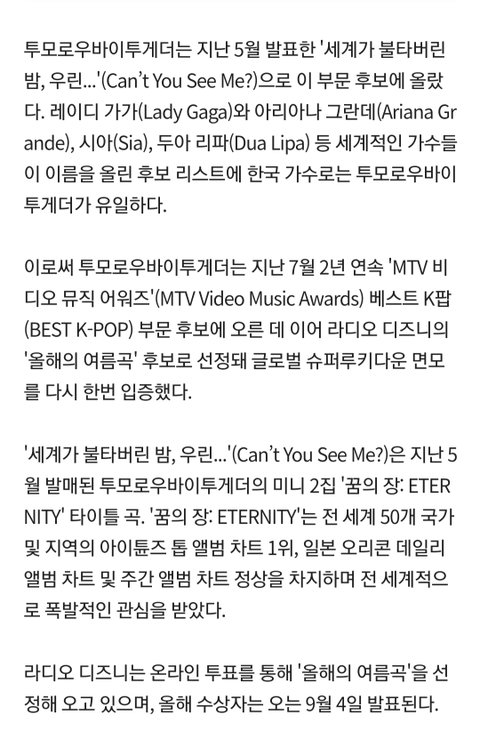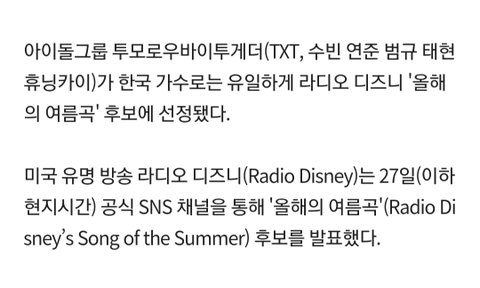 TXT 美라디오 디즈니'올해의 여름곡' 후보(공식