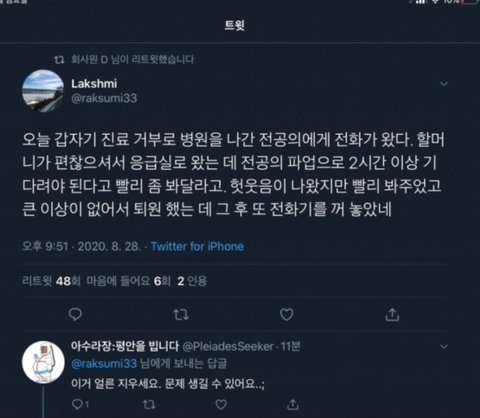 보건 : "그전처럼 병원을 비우는 건... 좀 생각해보시고..."