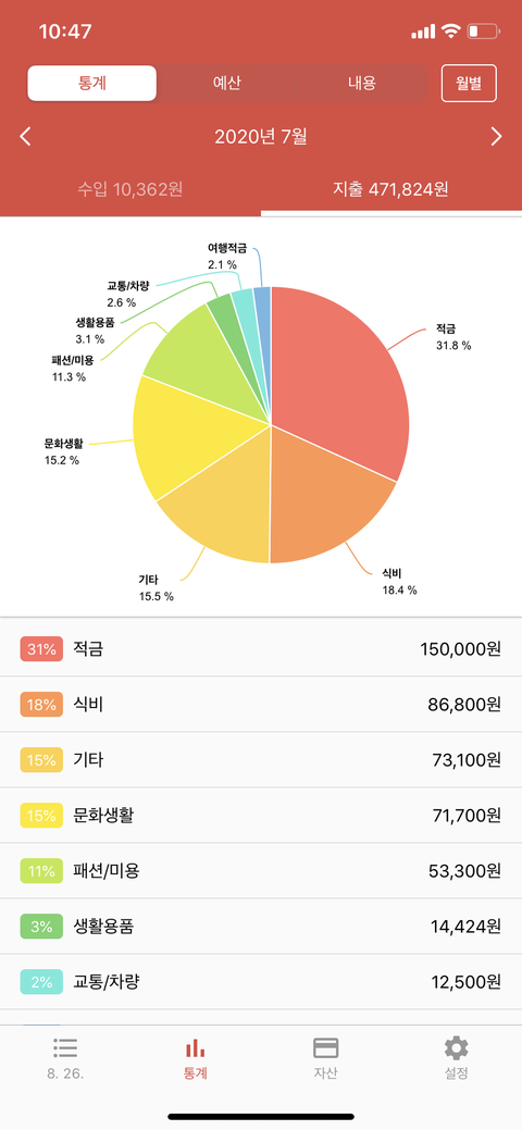보통은 적금 5만원 핸드폰비 10만원이야