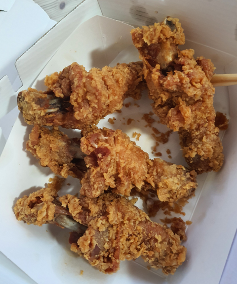 얼마전에 BBQ에 주문해서 먹은 황금올리브 닭다리 상태에요.