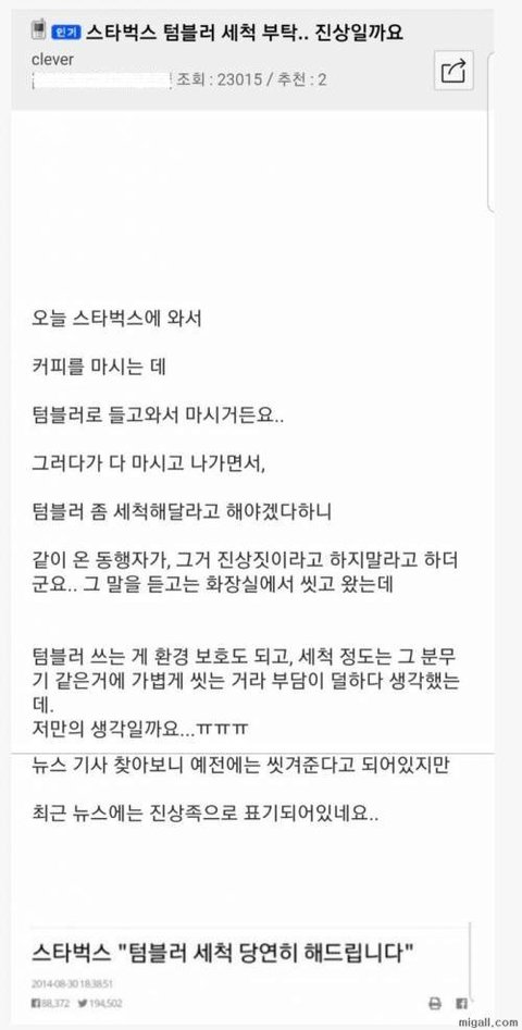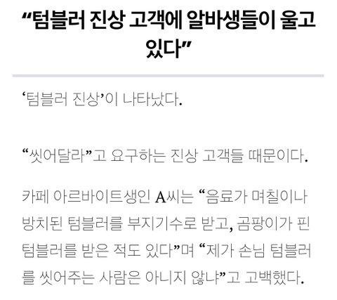 반)아니 환경 생각해서 텀블러 쓰는거면 솔직히 세척 정도는 카페에서 해줄 수 있는거 아님?