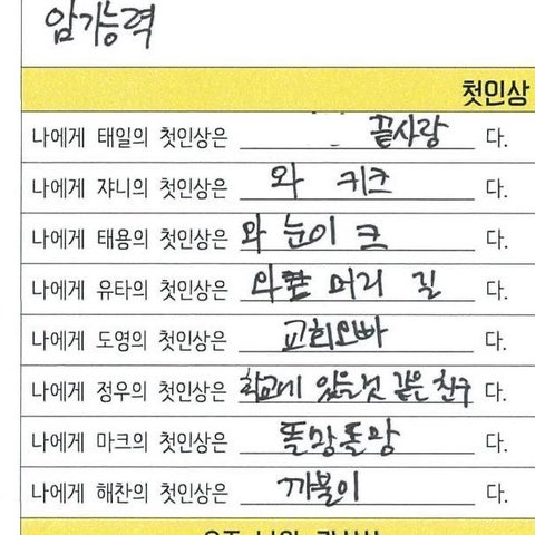 아니근뎈ㅋㅋㅋㅋ재현이가 저기에 써놓은 첫인상 다 웃겨ㅋㅋㅋㅋㅋㅋㅋㅋㅋㅋ