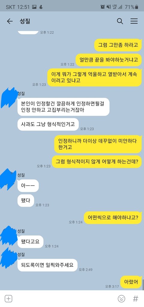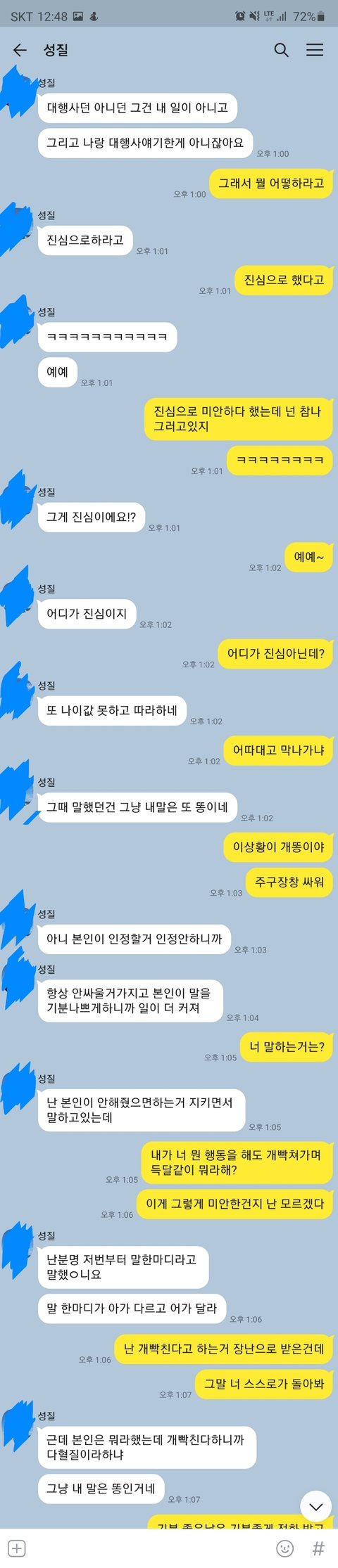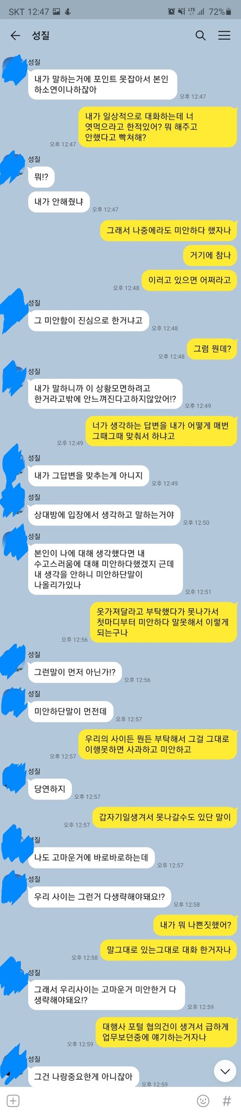 이런일로 싸우는지 속이 뭉게 지는거 같습니다.