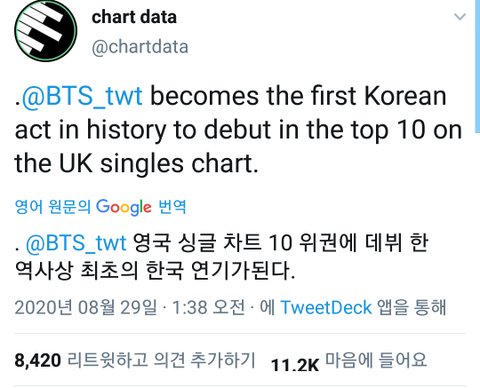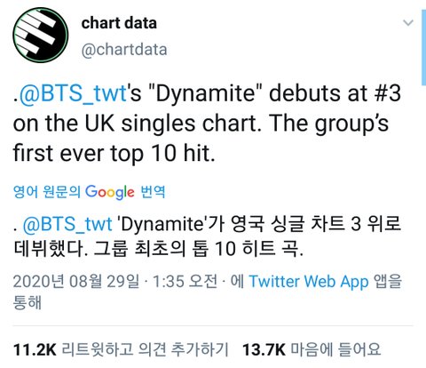 +차트 설명 약간) 방탄 영국 차트 3위 소감 ❤