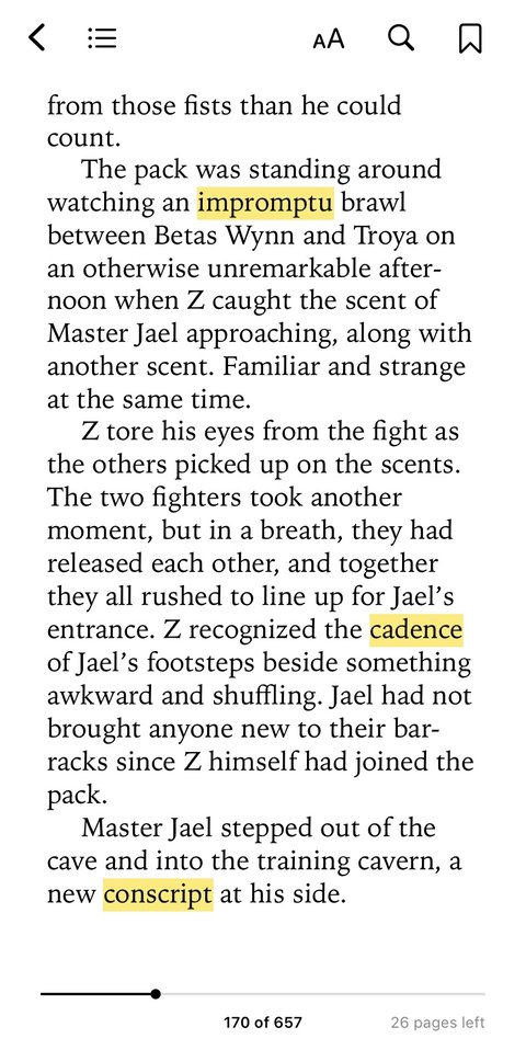 A) 원서에 관심 있는 친구들아 꿀팁 줄게 원서는 전자책으로 사서 보는게 훨씬 편해 우선 난 애플 기본 앱 books 에서 원서 읽는데 모르는 단어 나오면 바로 선택해서 사전 뜻 볼 수 있어 아마 이거 하는데 와이파이도 필요 없을거야! 그렇게 뜻 찾아보고 몰랐던 단어에 형광펜 표시하면서 읽으면 영어 공부에 많이 도움 될거 같아