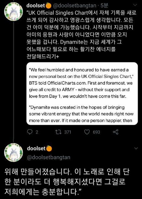 +차트 설명 약간) 방탄 영국 차트 3위 소감 ❤