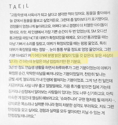 하 새벽이라서 진짜 갬성 미친 거같다ㅠ 그냥 주저리주저리 써봤는데 나도 그렇고 모든 시즈니들도 태일처럼 어둠 속에서 빛을 봤으면 좋겠어. 모두 오늘도 화이팅하자