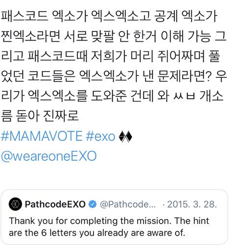 패스코드(2015년)에서 공계가 팬들이 엑소를 직접 찾는 식의 티저를 냄 알고보니 그 문제는 엑스엑소가 낸 것 팬들을 이용해 진짜 엑소의 위치를 찾아낸거임