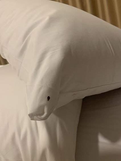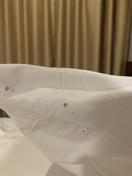 씻고 나서 잘 곳을 정리하다가 베개 뒤에 있는 곰팡이와 좀벌레, 정체 모를 검은 벌레들을 목격했습니다.