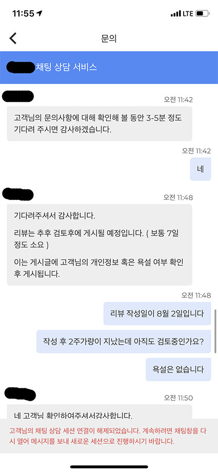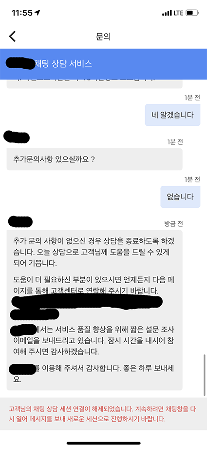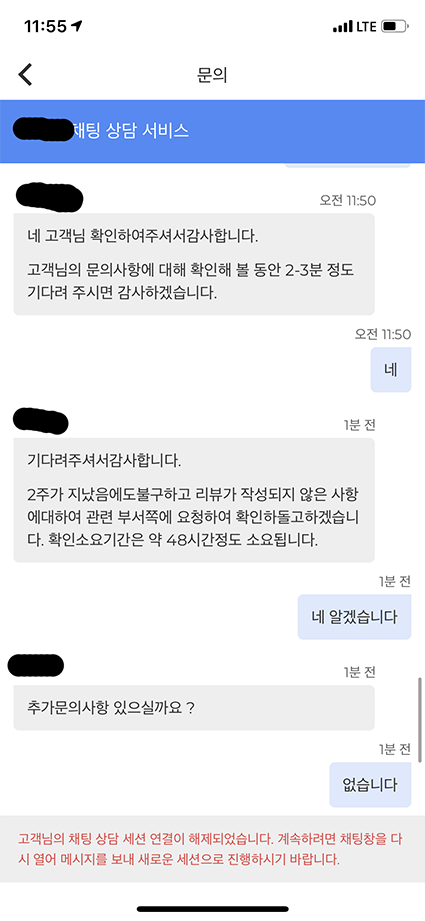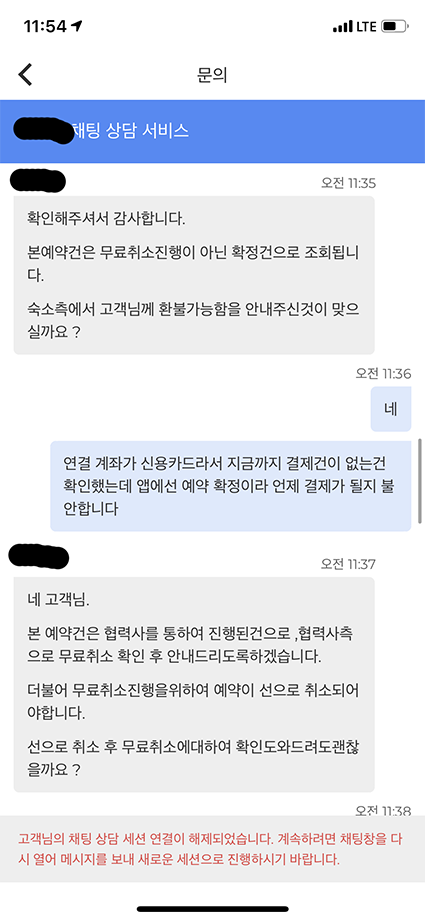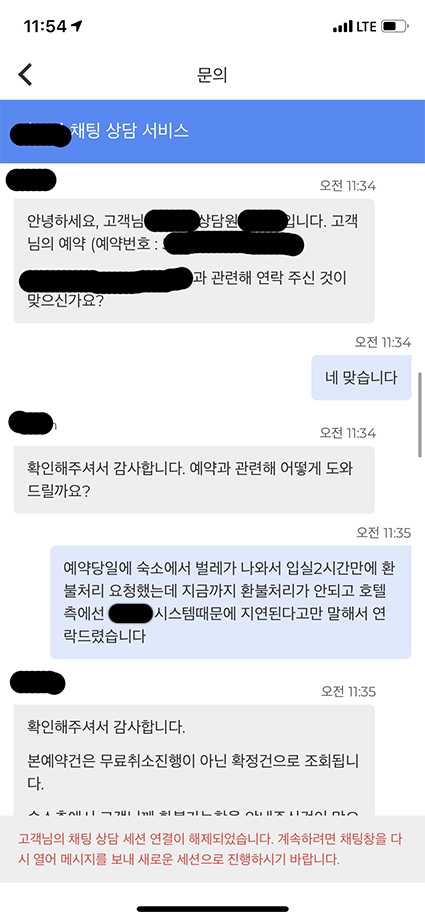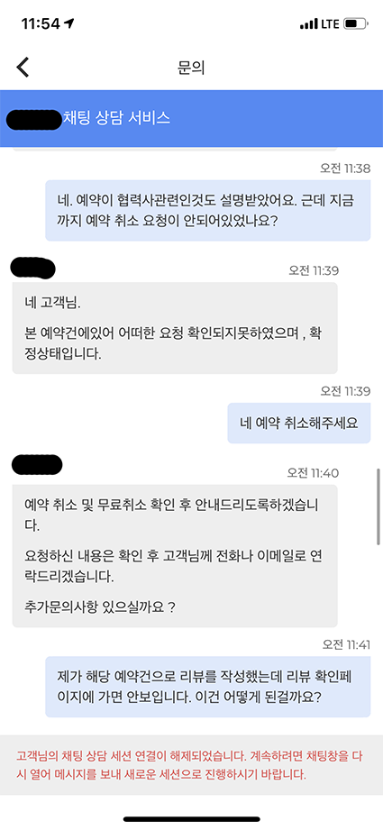 그래서 직접 예약앱 고객센터에 연락했습니다.