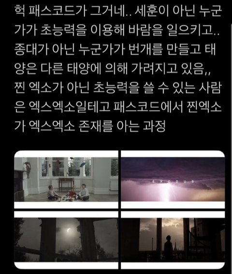 보여졌다 당시엔 멤버들의 초능력을 보여주는 거라 생각했지만 근처에 있던 엑스엑소가 초능력을