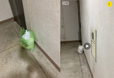 영상찍은거보니 2달전부터 계속 이런식으로 복도에 쓰레기를 내놓는데, 진짜 미치겠습니다.