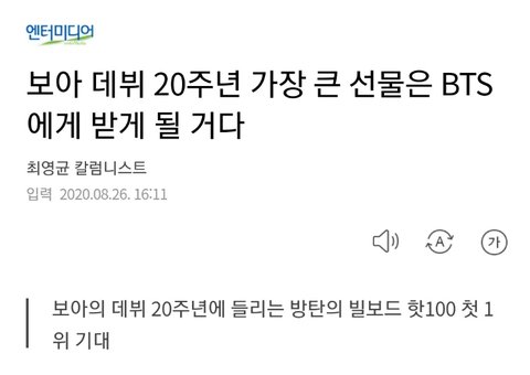 보아 20주년이랑 방탄이랑 뭔상관인데