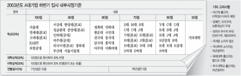 이때 또 하나의 특이한 사항이 시립대의 등장인데 시립대는 인지도가 젬병이었으나, 98년 IMF 크리로 인하여 등록금의 메리트로 인하여 그 입결의 놀라운 상승이 나타나게 된다.