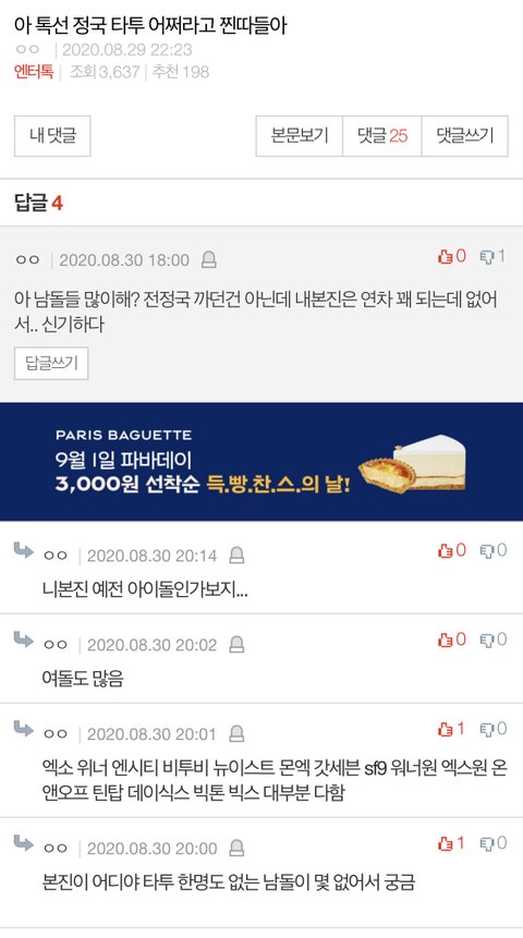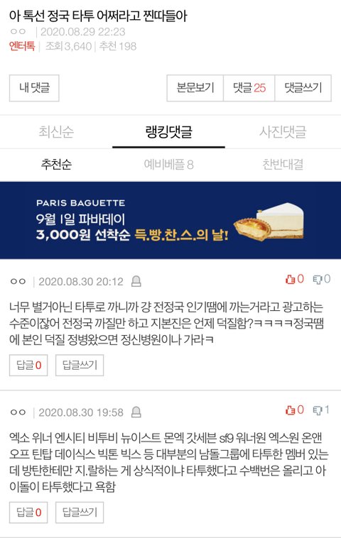 타투로 까이는게 억울한건 알겠는데 그렇다고 이렇게 타돌 언급까지 해야함???