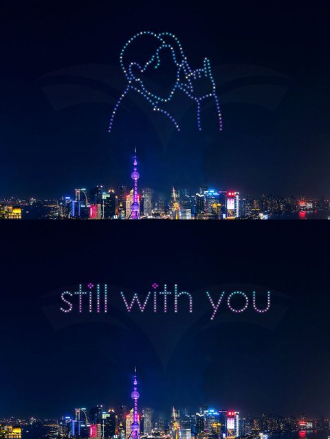상하이 상공에 드론으로 라이트쇼 한대