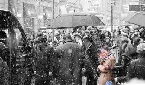 팬들을 볼 때마다 얼굴에 행복한 빛이 가득하고 눈이 엄청 내려도 그 이쁜 언굴을 가릴 수 없다.