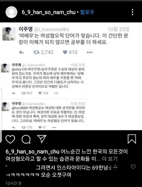 여배우는 여혐표현이라며 닉네임은 한남 ㅅㅊ ㅋㅋㅋㅋㅋㅋㅋㅋㅋㅋㅋ .