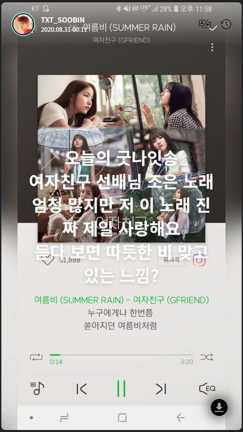 투바투 수빈이 추천해준 여자친구 여름비 맞아