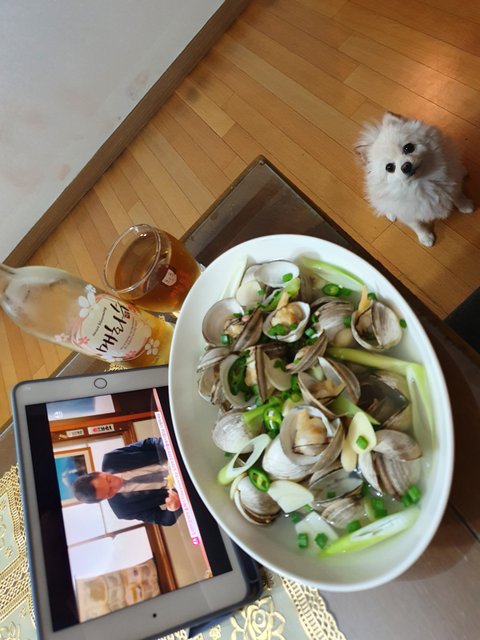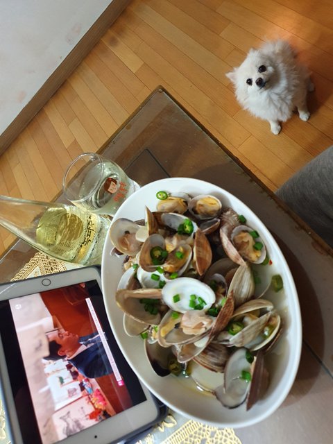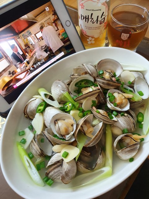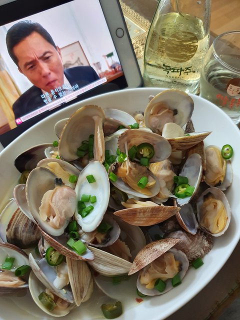 바지락조개 대합을 넣고 만든 술찜입니다.