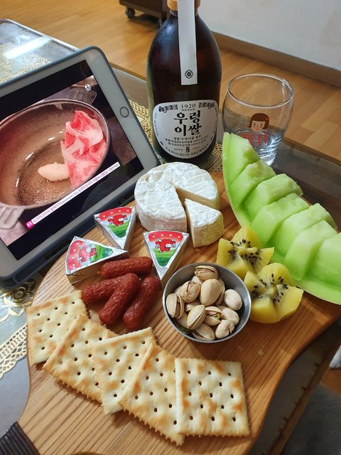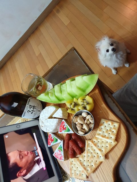 간단한 치즈플레이트입니다 과일치즈가 없어서 아쉬웠어요