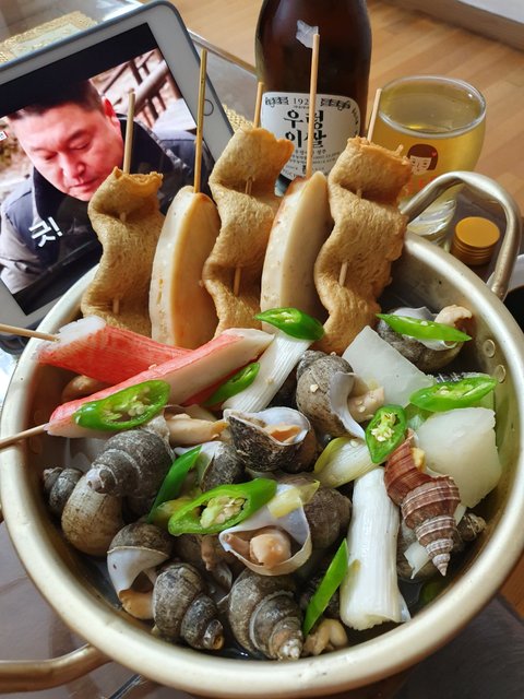 골뱅이와 오뎅 크레미를 넣고 만든 골뱅이탕입니다