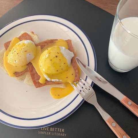 3. 지난주 일요일 아점으로 만들어본 스팸+식빵+수란+홀렌다이즈 소스 입니다.