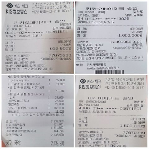 (어제까지 들어간 비용(영수증 첨부함): 분납으로 해서 150만원이랑 63만2천900원으로 총 213만2천900원이 나왔어요)