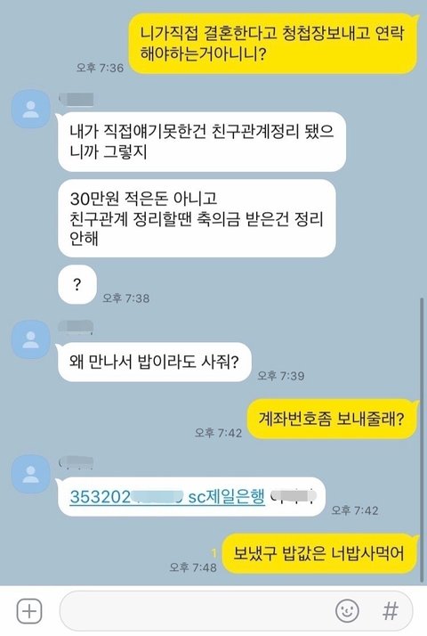 결혼 청첩장도 보내지않고 축의금부터 요구하는 저행동....?