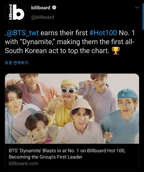 한국 최초 빌보드 핫100 1위 축하해ㅠㅠㅠㅠ 앞으로 더 높이 날아오르자