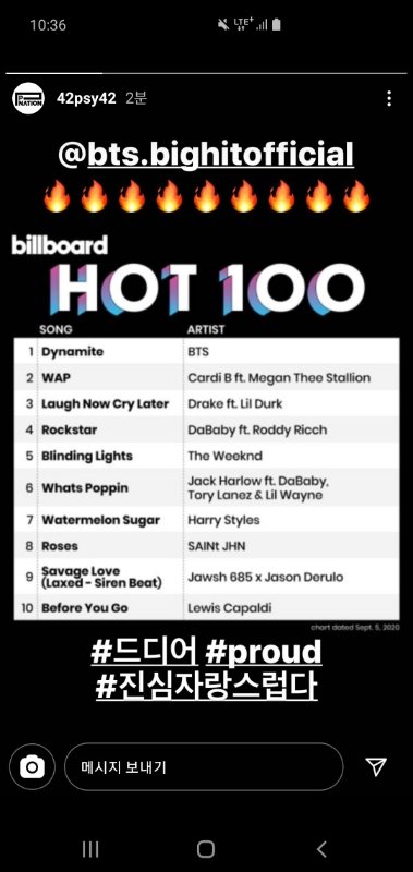 빅히트 회사 인스타 아이디 언급하면서 1위한거 올려주면서 축하해주네