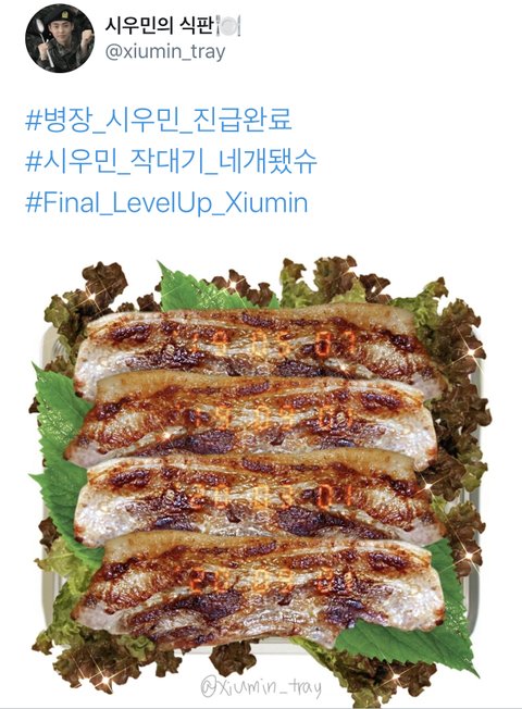 오랜만에 뵙는 시우민의 식판님의 센스있는 네줄 삼겹살 축전등 축제분위기 가득한 우리 행복한 꾹기단ㅠㅠㅠ