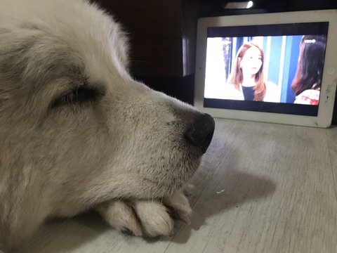 엎드려서 한다다를 보고 있는데 심바가 갑자기 오더니 같이 보다가 잠들었어요 ㅋㅋ