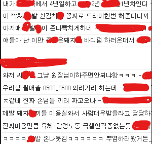 제가 그자리에서 본건 '제발 돼지새끼들 미용실와서 사람대우받으려고 ~~~' 까지 였습니다...
