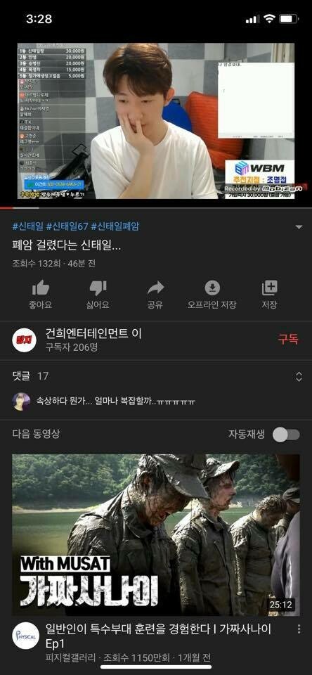 신태일 폐암 걸렸대^^
