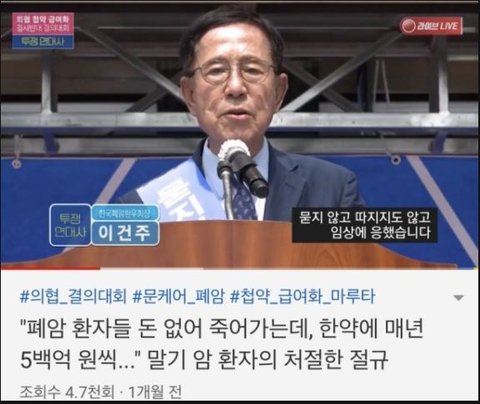 돈이 모자라 죽어간다는 폐암환우회 회장님 절규하는거 보니까 맘이 안좋아요 정말..
