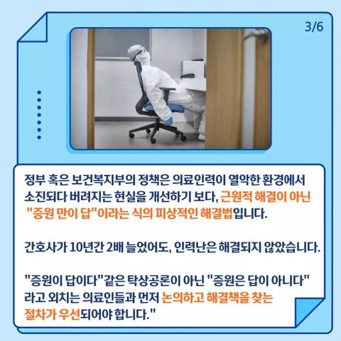 의사들의 실체(?)를 다 아는 사람 중 하나로서, 나는 의사들이 사람들의 기대에 부응하려, 스스로를 영웅으로 포장하려 무리하지 않았으면 좋겠다. 그냥 21세기를 살아가는 평범한 청년으로서 최소한의 식욕, 수면욕이 충족되는, 최소한의 기본권이 지켜지는 환경에서 안정적인 정규직으로 일하고 싶다고 이야기했으면 좋겠다.