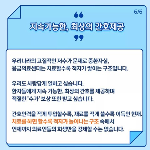나는 영웅들로 이뤄져야만 돌아가는 사회는 시스템이 부재한 사회라고 생각한다. 소방관들이 맨몸으로 불 속으로 뛰어들어야 사람을 구할 수 있는 사회는 좋은 사회가 아니다. 영웅이 아닌 평범한 소시민이어도 환자를 안전하게 치료할 수 있는 사회, 소방관이 진화작업을 할 때 안전한 방화복으로 보호받을 수 있는 사회가 좋은 사회 아닐까? 영웅들의 선의에 기대어 유지되는 병원이 아니라 평범한 사람들이 평범하게 일해도 환자가 잘 치료받을 수 있는 병원이어야 한다.